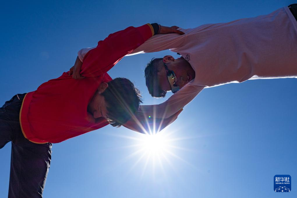 12月2日,索南加參(左一)在西藏自治區(qū)競(jìng)技體育管理中心訓(xùn)練。新華社記者 丁增尼達(dá) 攝