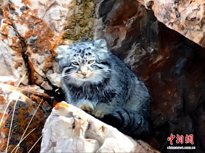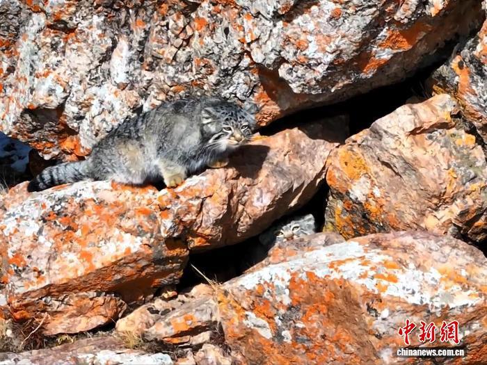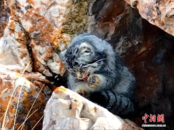 圖為兔猻在巖石間“梳洗”。陳天貴 攝