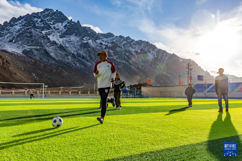 頓珠嘉措是嘉黎縣中學(xué)初二的學(xué)生,也是該校足球隊(duì)的成員。嘉黎縣中學(xué)的球場被當(dāng)?shù)厝朔Q為“雪山下的夢(mèng)幻球場”,球場背靠連綿的雪山,白云飄蕩在藍(lán)天。盡管嘉黎縣海拔高、空氣稀薄,但是當(dāng)?shù)睾⒆觽儗?duì)體育運(yùn)動(dòng)的熱愛不減。