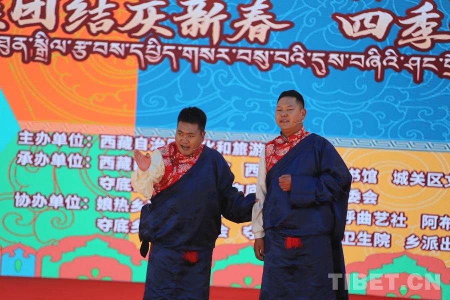 文藝演出在歡聲笑語中拉開帷幕。舞蹈《嘎拉村的歡笑》節奏明快、情感真摯,小品《郎才女貌》幽默詼諧、貼近生活,歌曲《藏北天堂》悠揚動人,藏戲歌舞《變融》則融合傳統與現代藝術元素,贏得現場陣陣掌聲。整場演出緊緊圍繞“藏鄉年味”主題,為觀眾呈現了一場有溫度、有煙火氣的本土文化盛宴?!?/p>