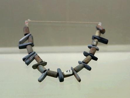 圖為卡若遺址出土的石骨項鏈。裝飾品共出土50件,其中笄5件、璜6件、環5件、珠10顆、項飾2串、鐲1件、貝飾10件、牌飾10件和垂飾1件。質料有石、玉、骨、貝等。 圖片來源:西藏商報