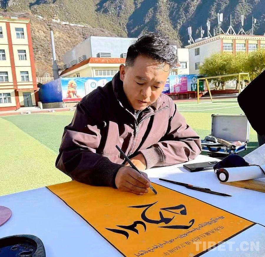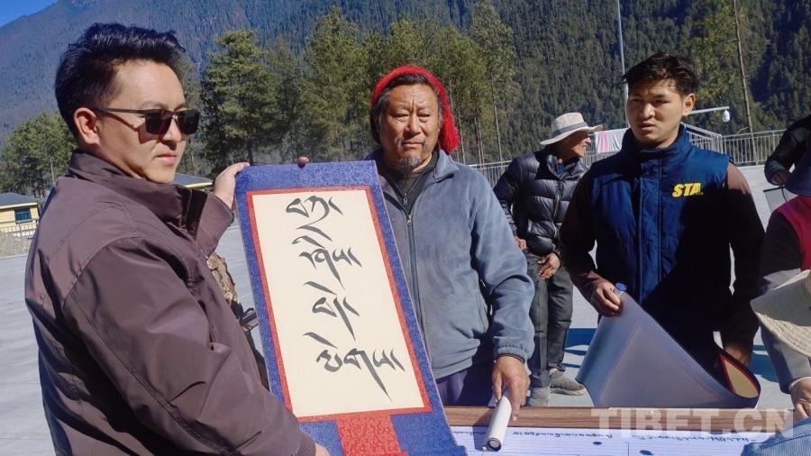 圖為益西桑布為群眾贈送飽含祝福的書法作品 受訪者供圖