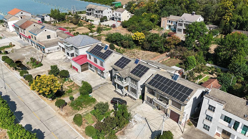 在城址山村部對面的民宅屋頂上,一排排光伏板整齊排列,光伏板下電表箱里跳動的數字,記錄著光伏電站的發電量。