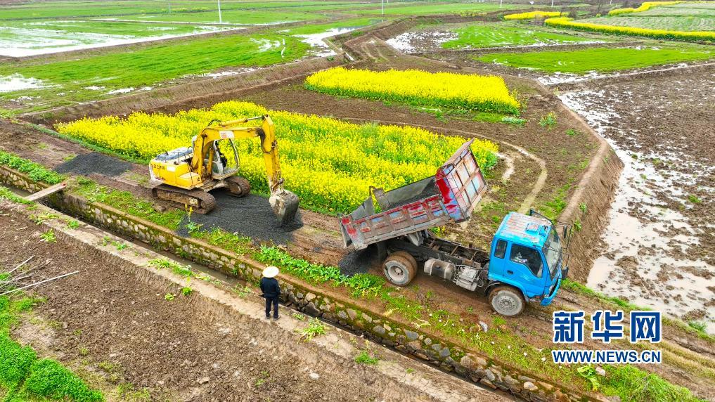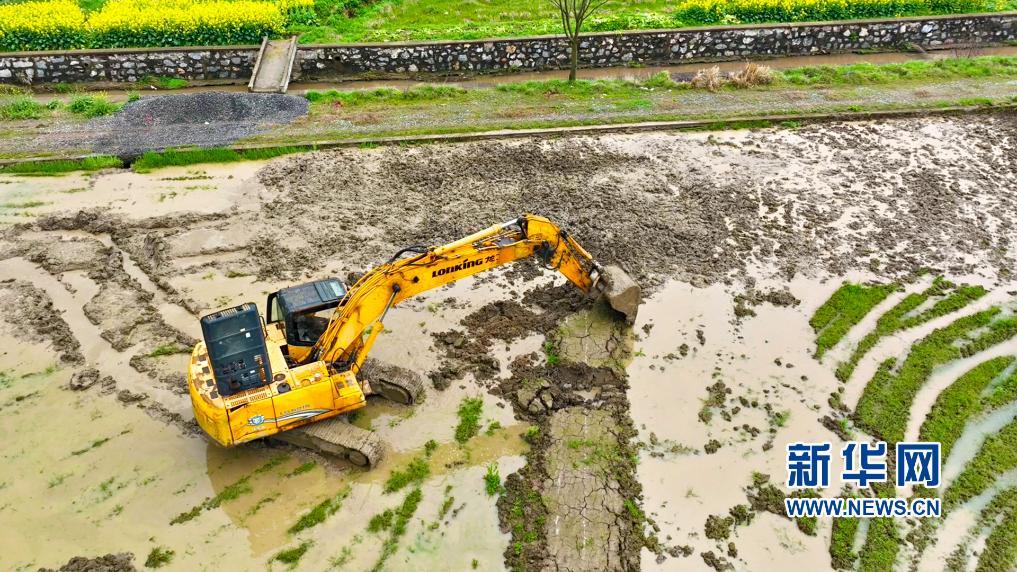 春雨綿綿,湖南省耒陽市新市鎮(zhèn)高爐村的農(nóng)田間機(jī)械轟鳴,十分熱鬧。工人們冒雨施工,修整機(jī)耕道、修繕疏浚灌溉渠、小田改大田,確保在4月初完成高爐示范片的高標(biāo)準(zhǔn)農(nóng)田建設(shè)工作。