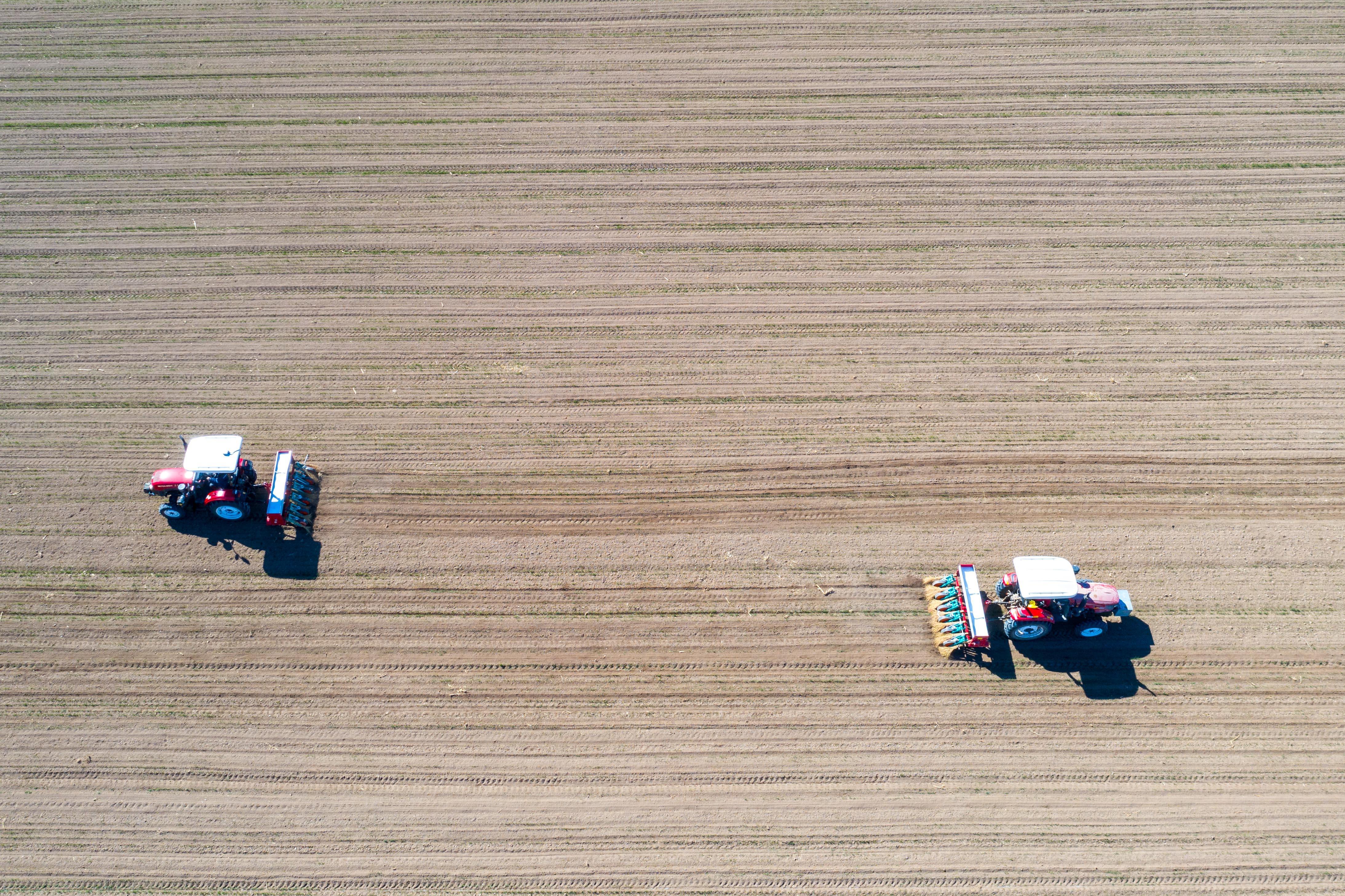 山東省黃河三角洲農(nóng)業(yè)高新技術(shù)產(chǎn)業(yè)示范區(qū),工作人員搶抓農(nóng)時開展春種,田間地頭一片忙碌。新華社記者朱崢 攝