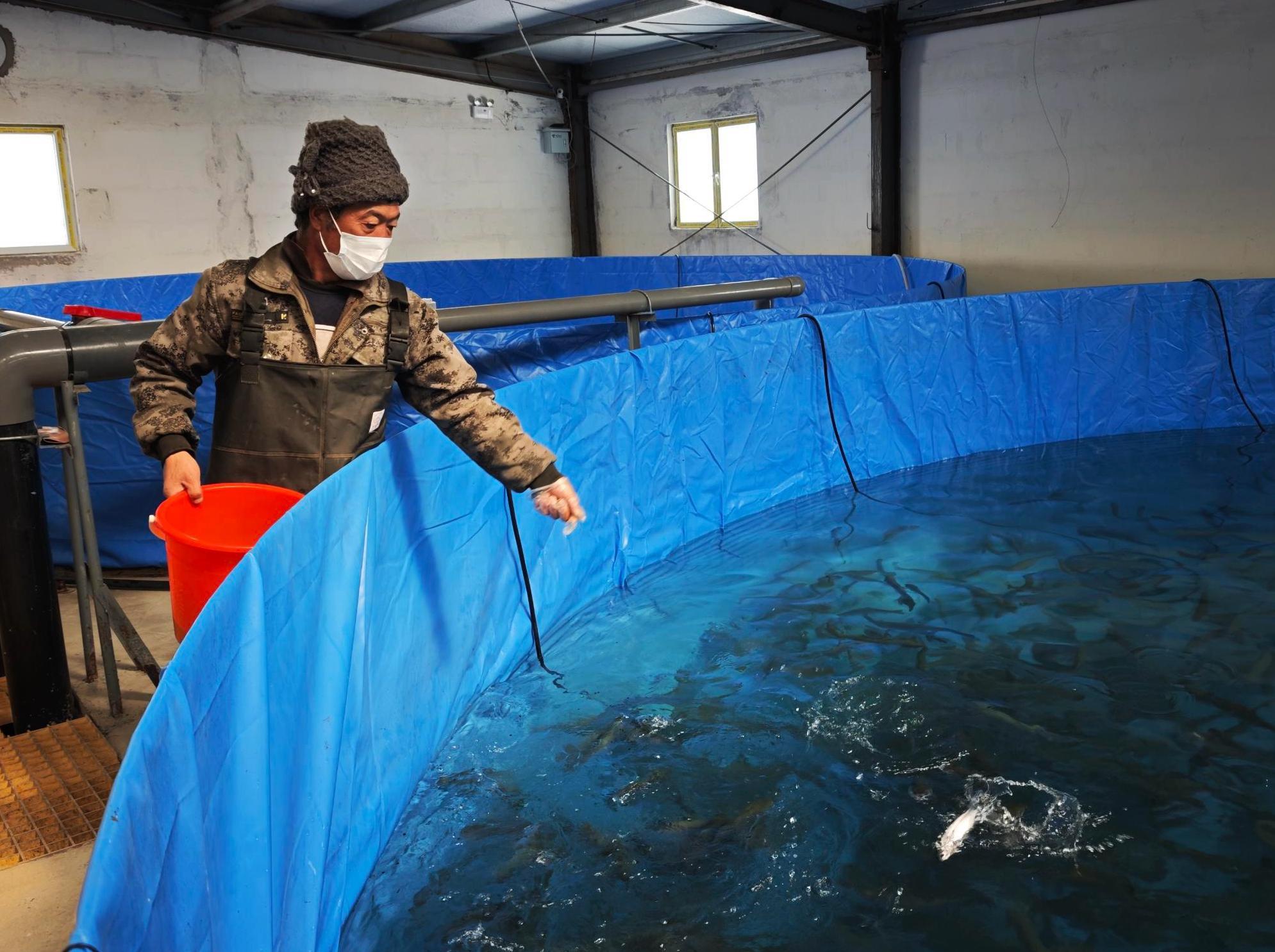 基地負責人楊光介紹,目前池子里正茁壯成長著約2萬尾虹鱒魚,經過近10個月的精心喂養,目前每條重量達到一斤左右?!邦A計在今年年底,這些魚將被出售,按照當前的市場價格估算,銷售額達到300多萬元。此外,基地還有5萬尾鱸魚,也將在今年6月出售。”