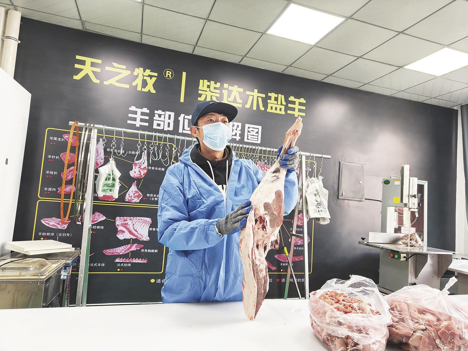 “我們的羊肉是來自青藏高原的柴達木鹽羊,肉質鮮美,歡迎大家選購!”